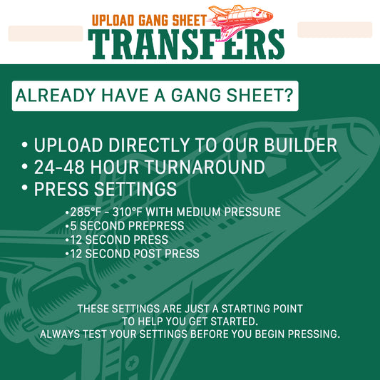 Begin your DTF transfers by choosing one of the following DTF gang sheet builder options.